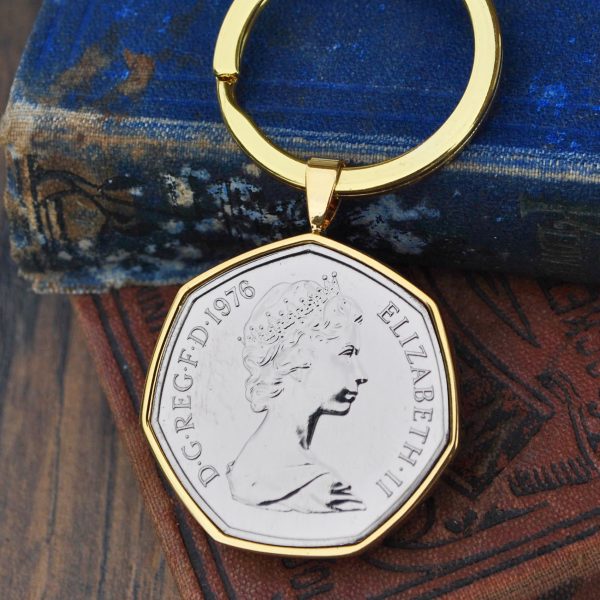 Our selection of 50th birthday jewellery, including coin keyrings, coin necklaces, cufflinks, and hip flasks, offers the perfect blend of elegance and sentimentality.