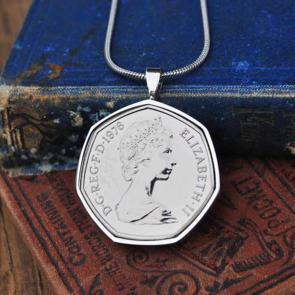 We handcraft our 50th birthday gifts using genuine coins issued in 1974, marking the year that the recipient was born. Choose from necklaces, keyrings, hip flasks, cufflinks and more. Browse our birthday jewellery for those born in 1974 below.