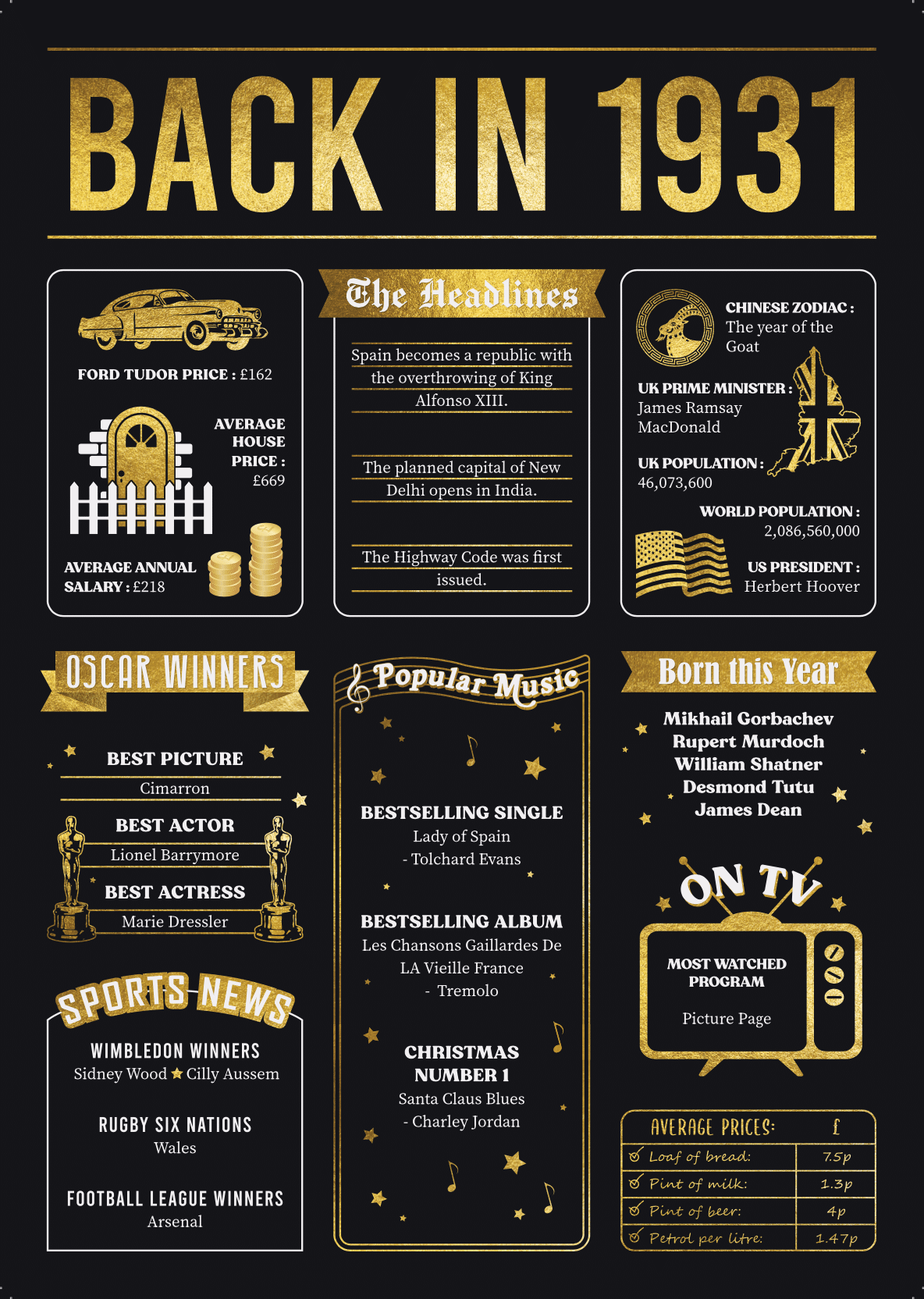 Whether the recipient of your card was born or married in 1931 and you are shopping for a 94th birthday or anniversary gift, or it was a very special year for another reason, these make a very thoughtful and personalised cards.