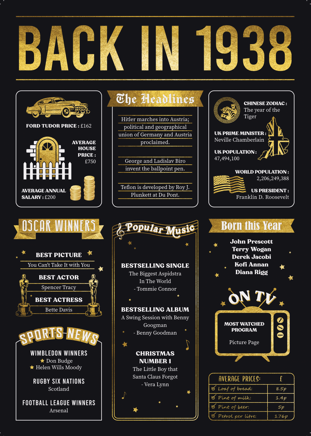 Whether the recipient of your card was born or married in 1938 and you are shopping for a 87th birthday or anniversary gift, or it was a very special year for another reason, these make a very thoughtful and personalised cards.