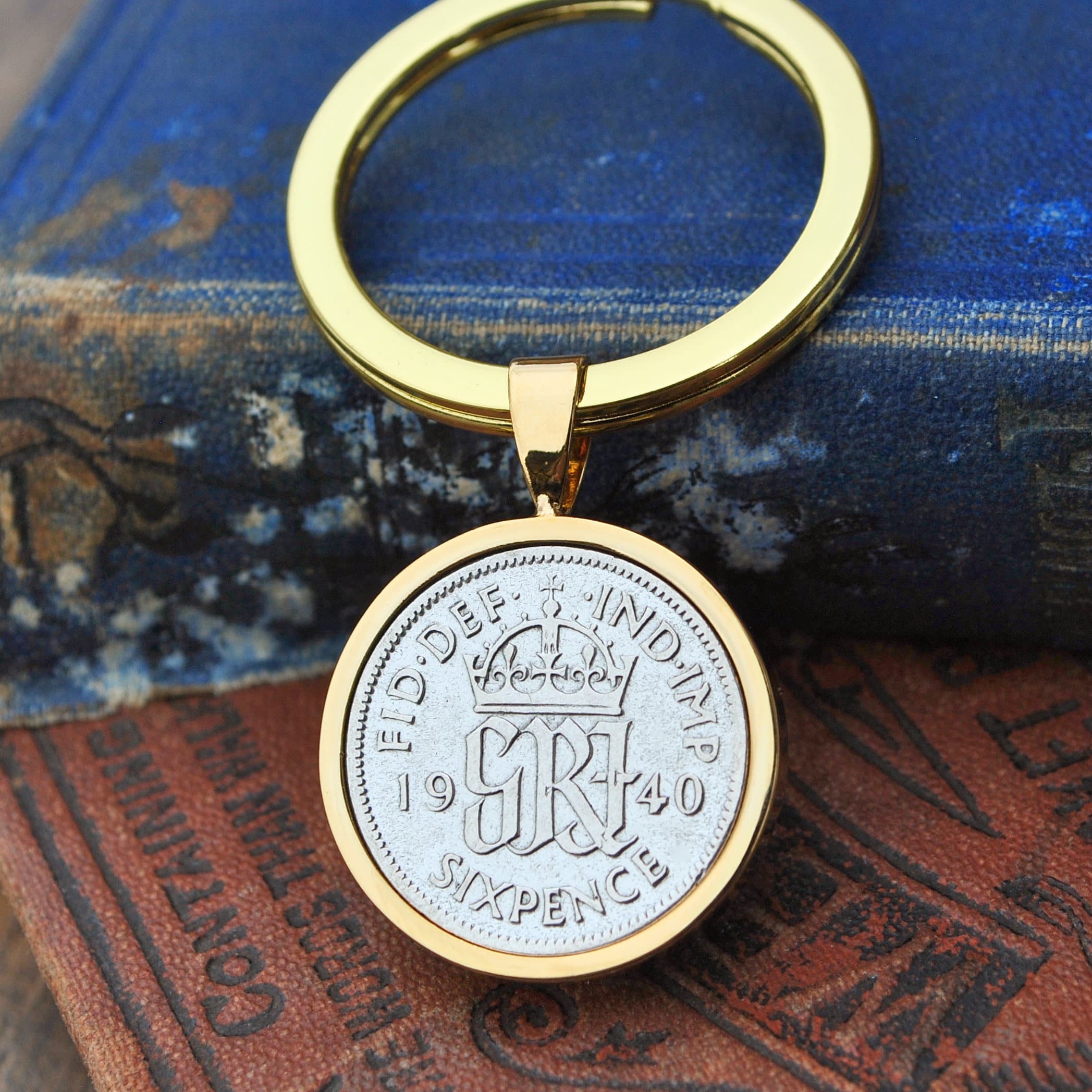 1940 Lucky Sixpence Coin Keyring, 86th Birthday or Anniversary Gift – Gold