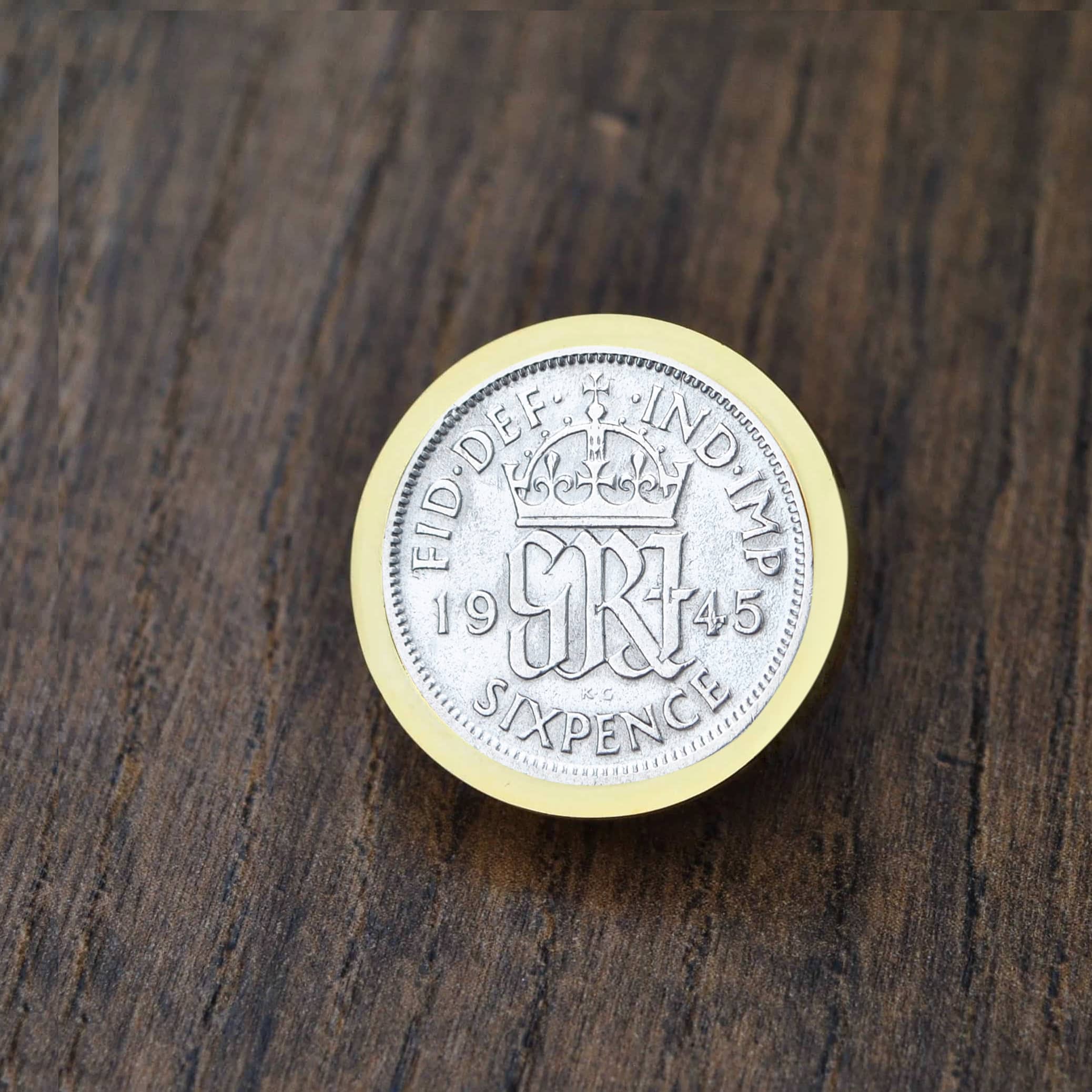 1 review for 1945 Lucky Sixpence Coin Brooch/Tie Pin, 81st Birthday- Gold