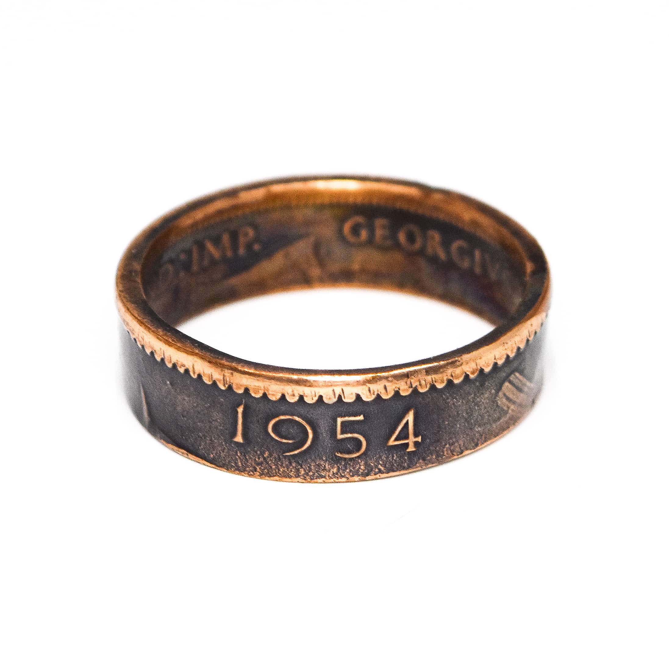 Outstanding quality coin rings made from genuine, highly polished Bronze Farthings minted in 1954. Whether the recipient of your gift was born or married in 1954 and you are shopping for a 71st birthday or anniversary gift or it was a very special year for another reason, these rings make a very thoughtful and personalised gift.