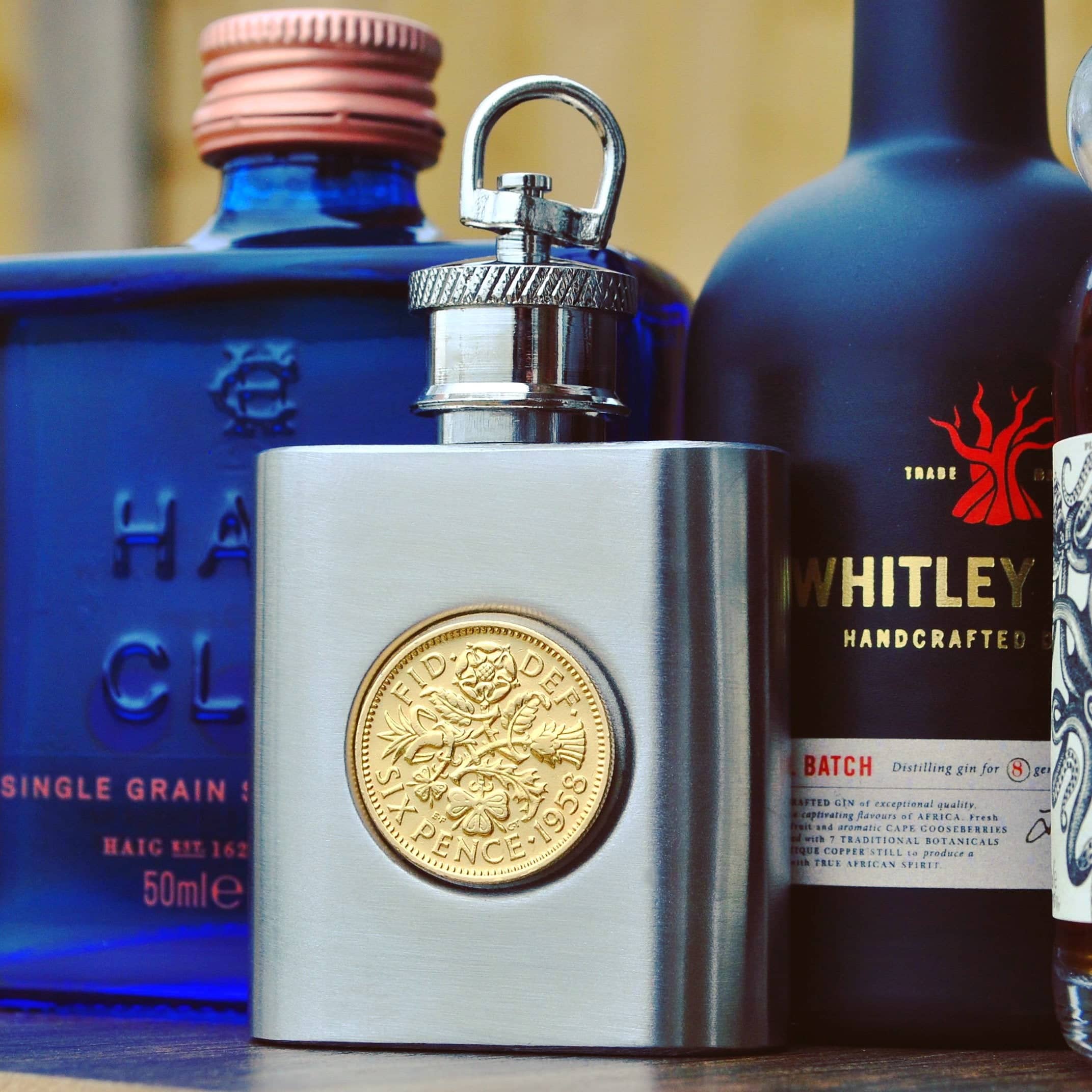 Outstanding quality coin hip flasks made from genuine, highly polished Sixpences minted in 1960. Whether the recipient of your gift was born or married in 1960 and you are shopping for a 66th birthday or anniversary gift, or it was a very special year for another reason, these hip flasks make a very thoughtful and personalised gift.