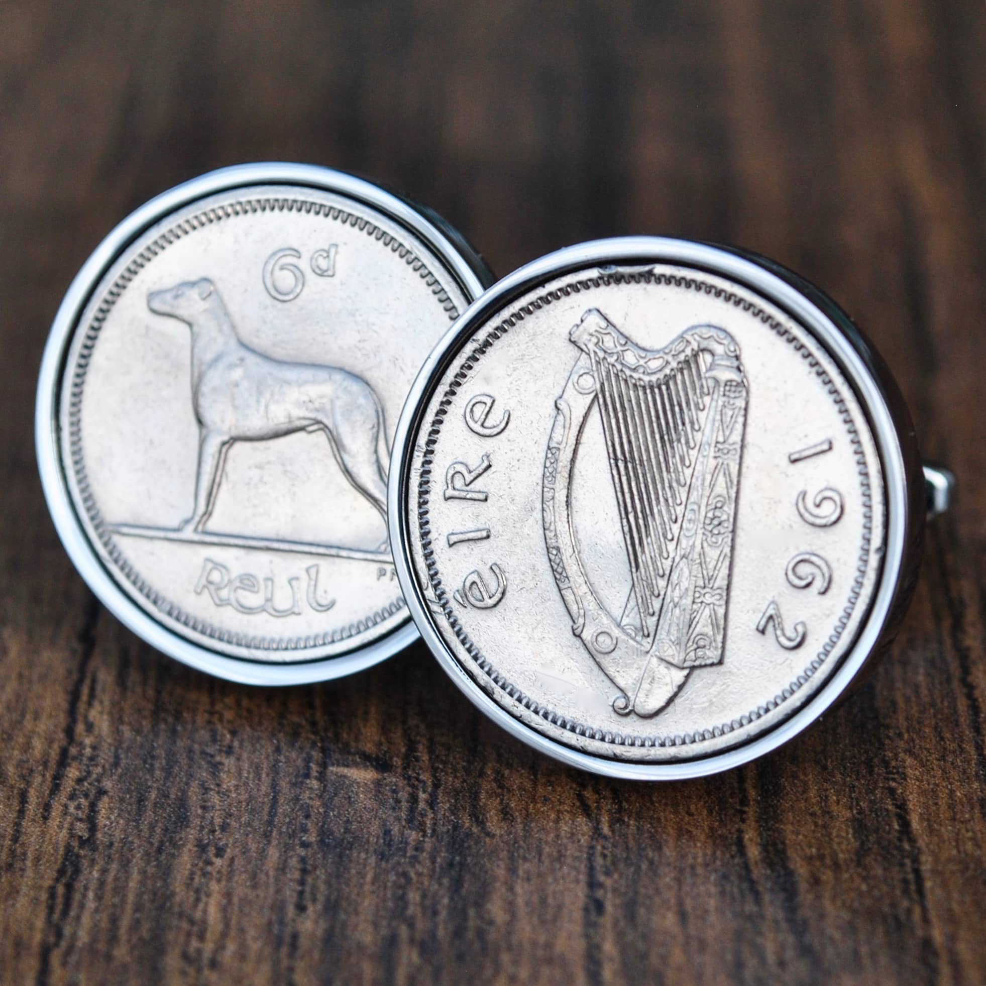 Outstanding quality coin cufflinks made from genuine, highly polished Irish Sixpences minted in 1962. Whether the recipient of your gift was born or married in 1962 and you are shopping for a 63rd birthday or anniversary gift, or it was a very special year for another reason, these cufflinks make a very thoughtful and personalised gift.