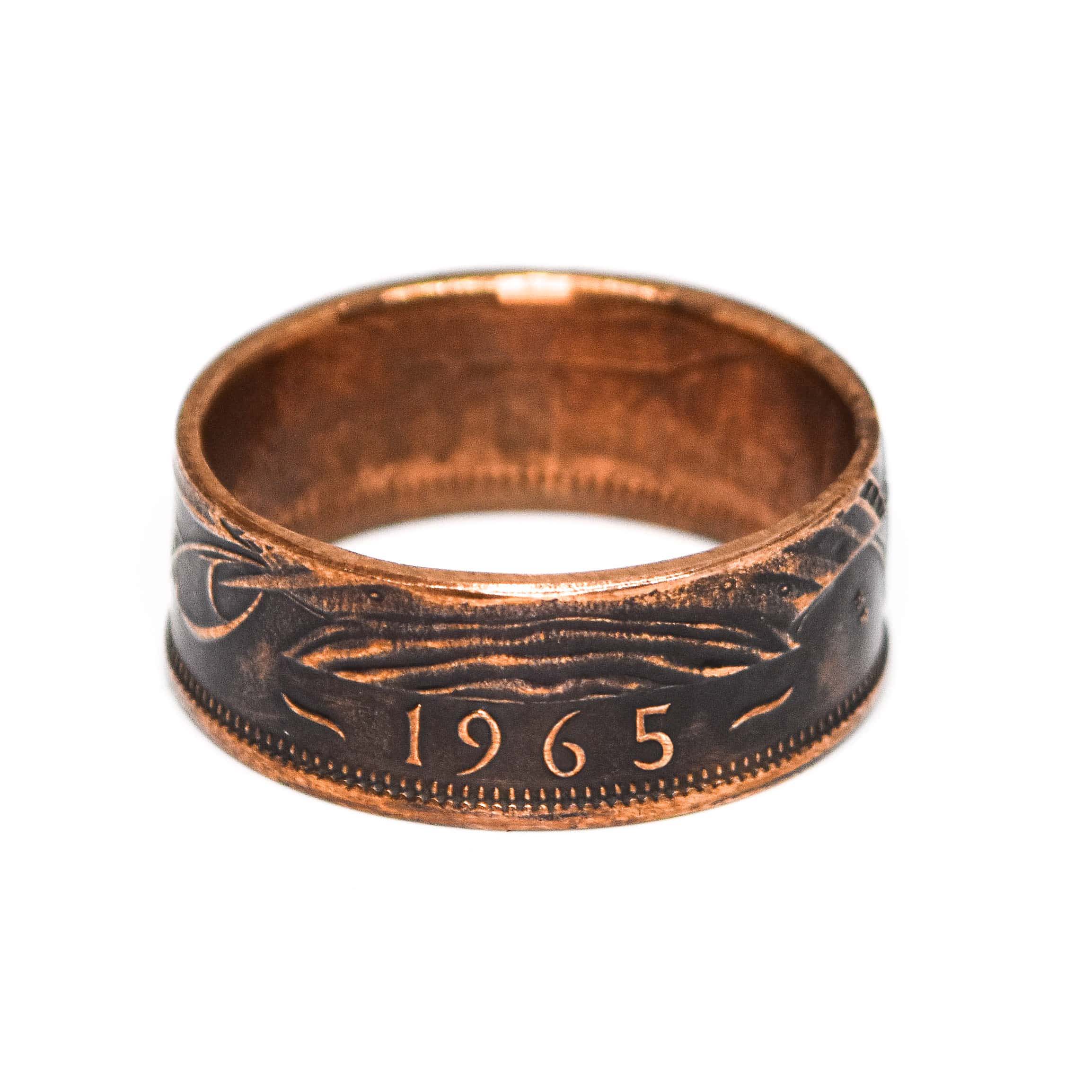 Outstanding quality coin rings made from genuine, highly polished bronze Half Penny’s minted in 1965. Whether the recipient of your gift was born or married in 1965 and you are shopping for a 60th birthday or anniversary gift or it was a very special year for another reason, these rings make a very thoughtful and personalised gift.