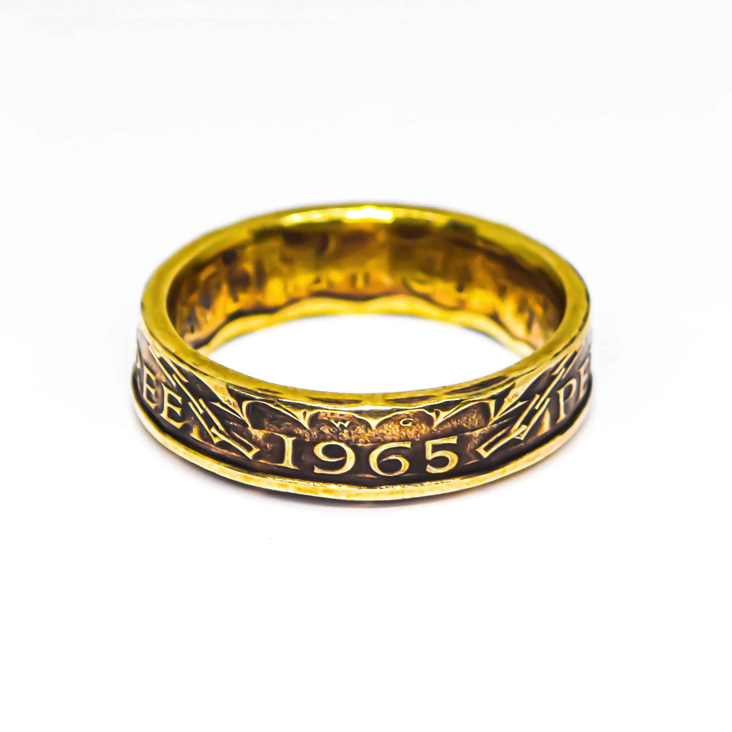 Outstanding quality coin rings made from genuine, highly polished brass Threepence’s minted in 1965. Whether the recipient of your gift was born or married in 1965 and you are shopping for a 60th birthday or anniversary gift or it was a very special year for another reason, these rings make a very thoughtful and personalised gift.