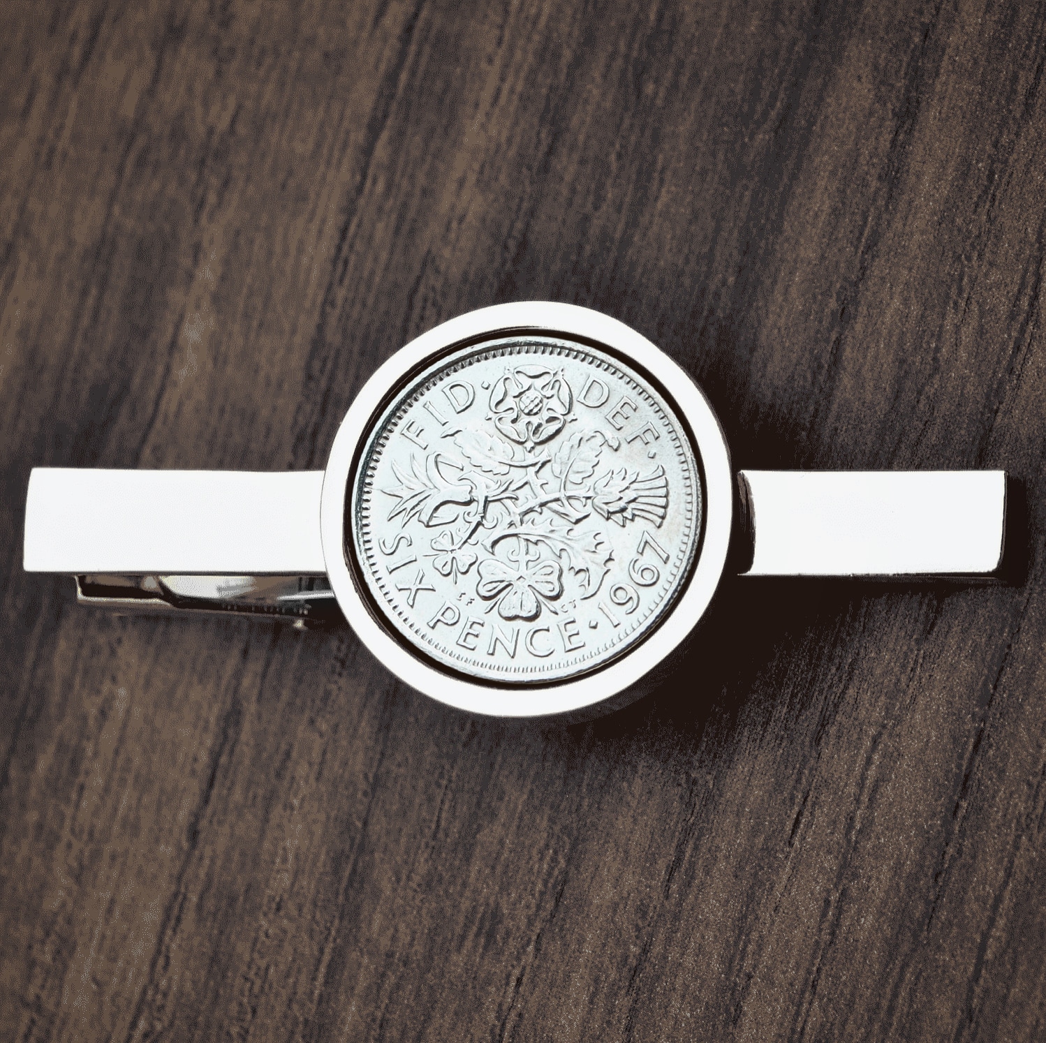 Outstanding quality coin tie clips made from genuine, highly polished Sixpences minted in 1967. Whether the recipient of your gift was born or married in 1967 and you are shopping for a 59th birthday or anniversary gift, or it was a very special year for another reason, these tie clips make a very thoughtful and personalised gift.
