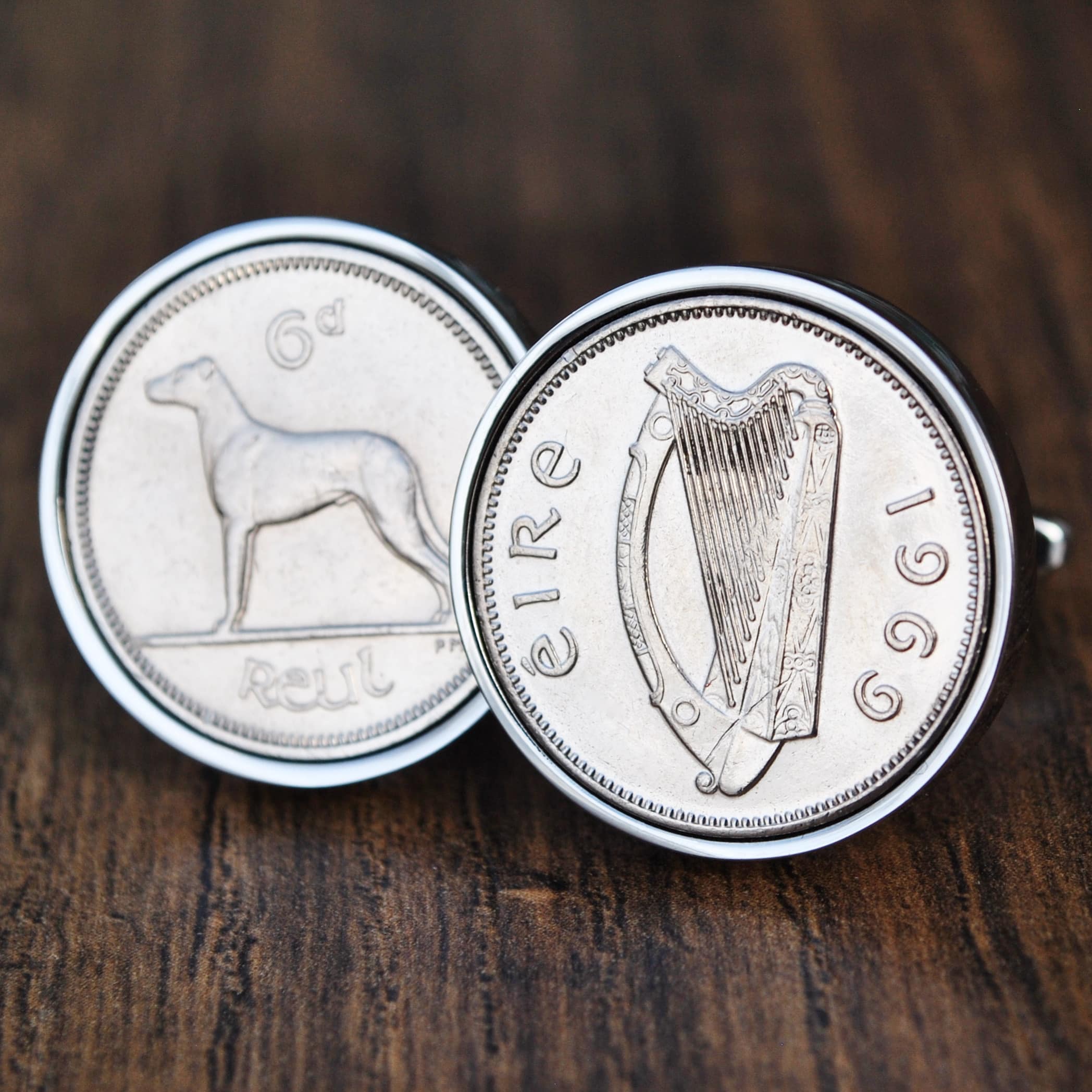 1969 Lucky Irish Sixpence Coin Cufflinks, 56th Birthday or Anniversary Gift – Silver
