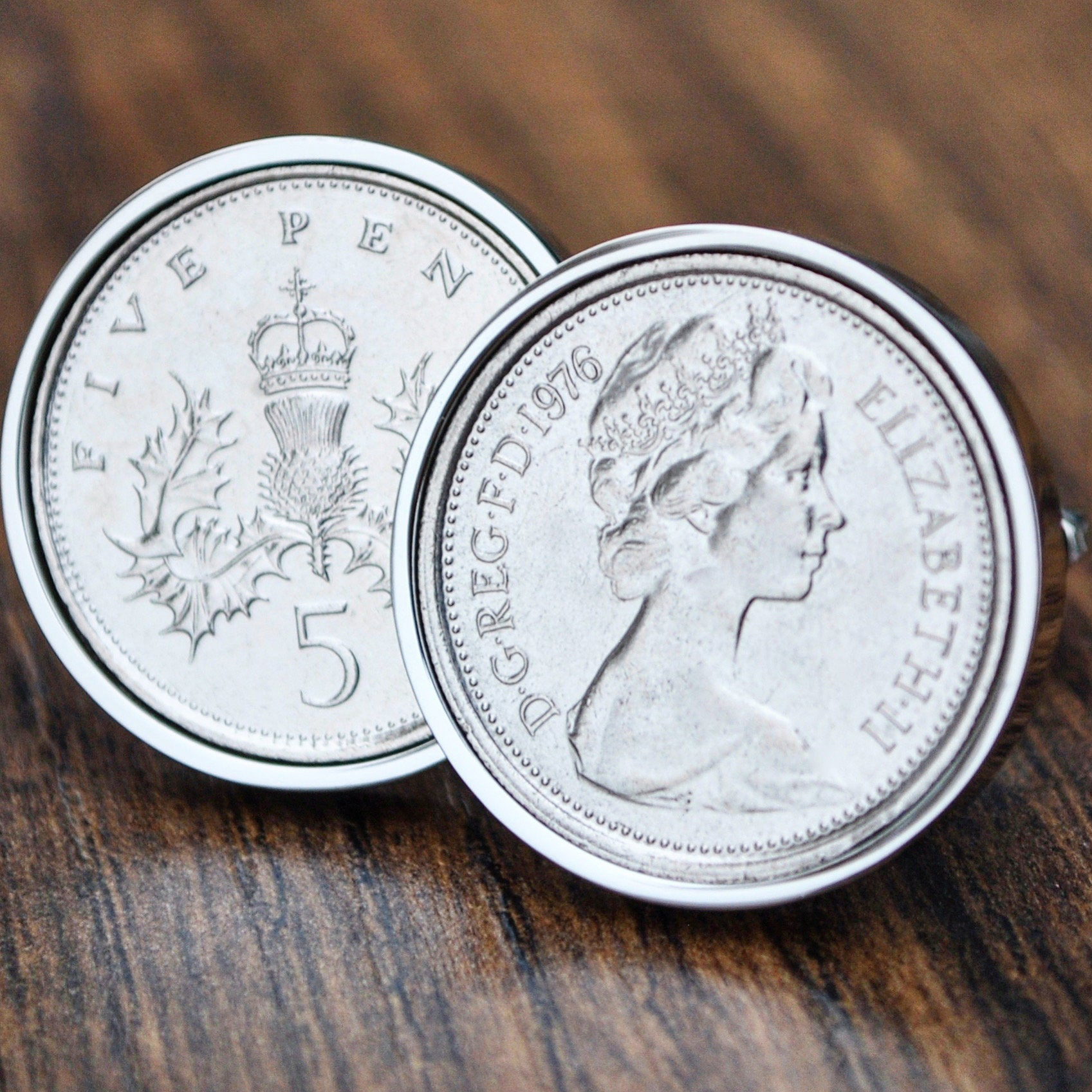 1976 Five Pence Coin Cufflinks, 50th Birthday or Anniversary Gift – Silver