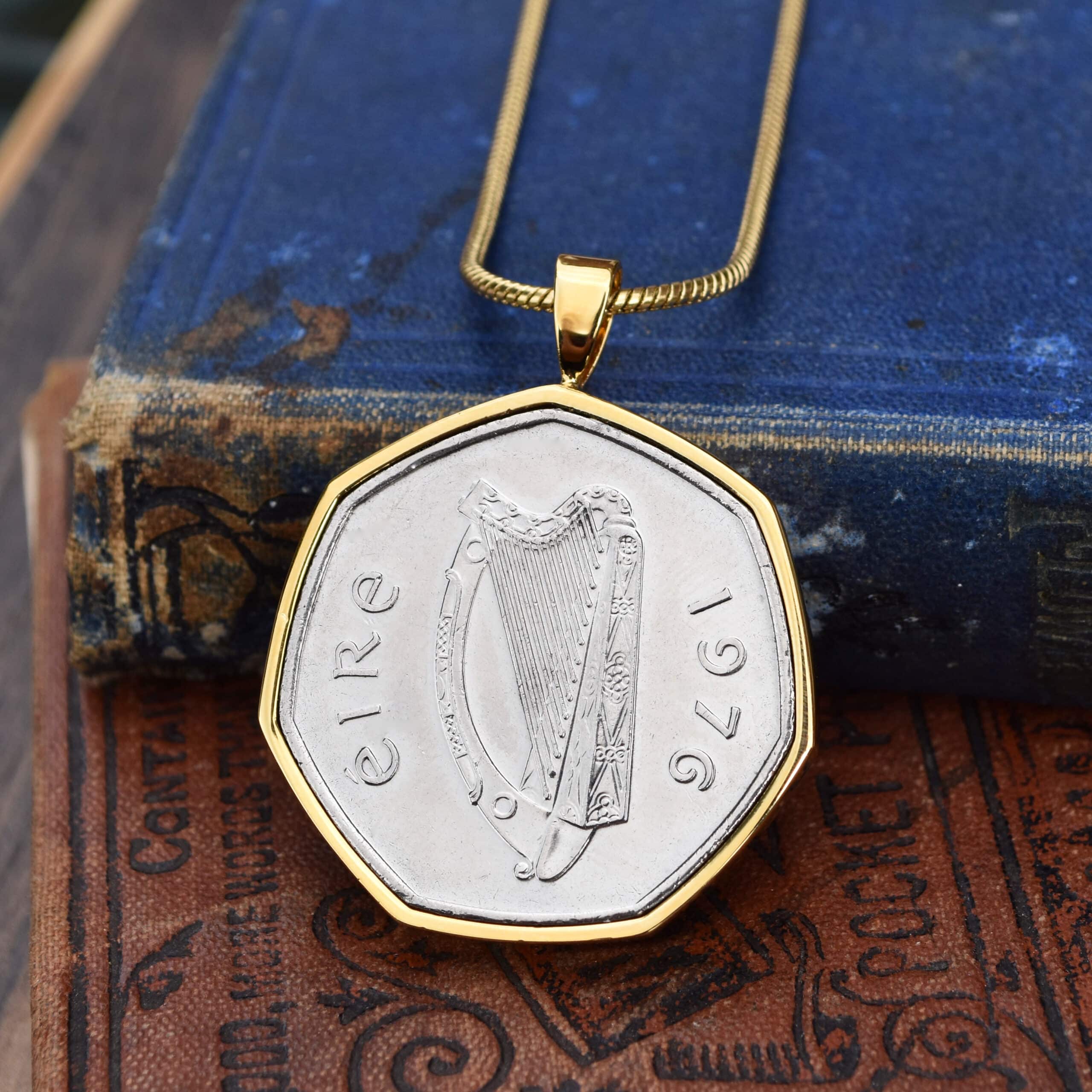 Outstanding quality coin necklaces made from genuine, highly polished Irish Fifty Pences minted in 1976. Whether the recipient of your gift was born or married in 1976 and you are shopping for a 49th birthday or anniversary gift, or it was a very special year for another reason, these necklaces make a very thoughtful and personalised gift.