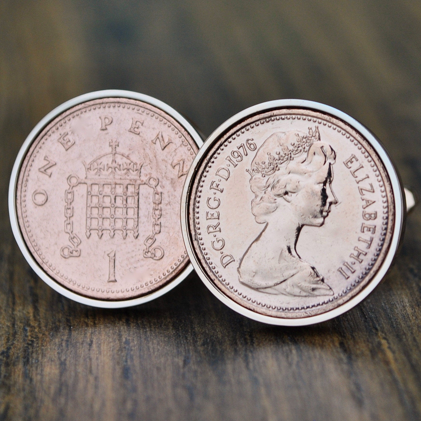 Outstanding quality coin cufflinks made from genuine, highly polished One Pences minted in 1976. Whether the recipient of your gift was born or married in 1976 and you are shopping for a 50th birthday or anniversary gift, or it was a very special year for another reason, these cufflinks make a very thoughtful and personalised gift.
