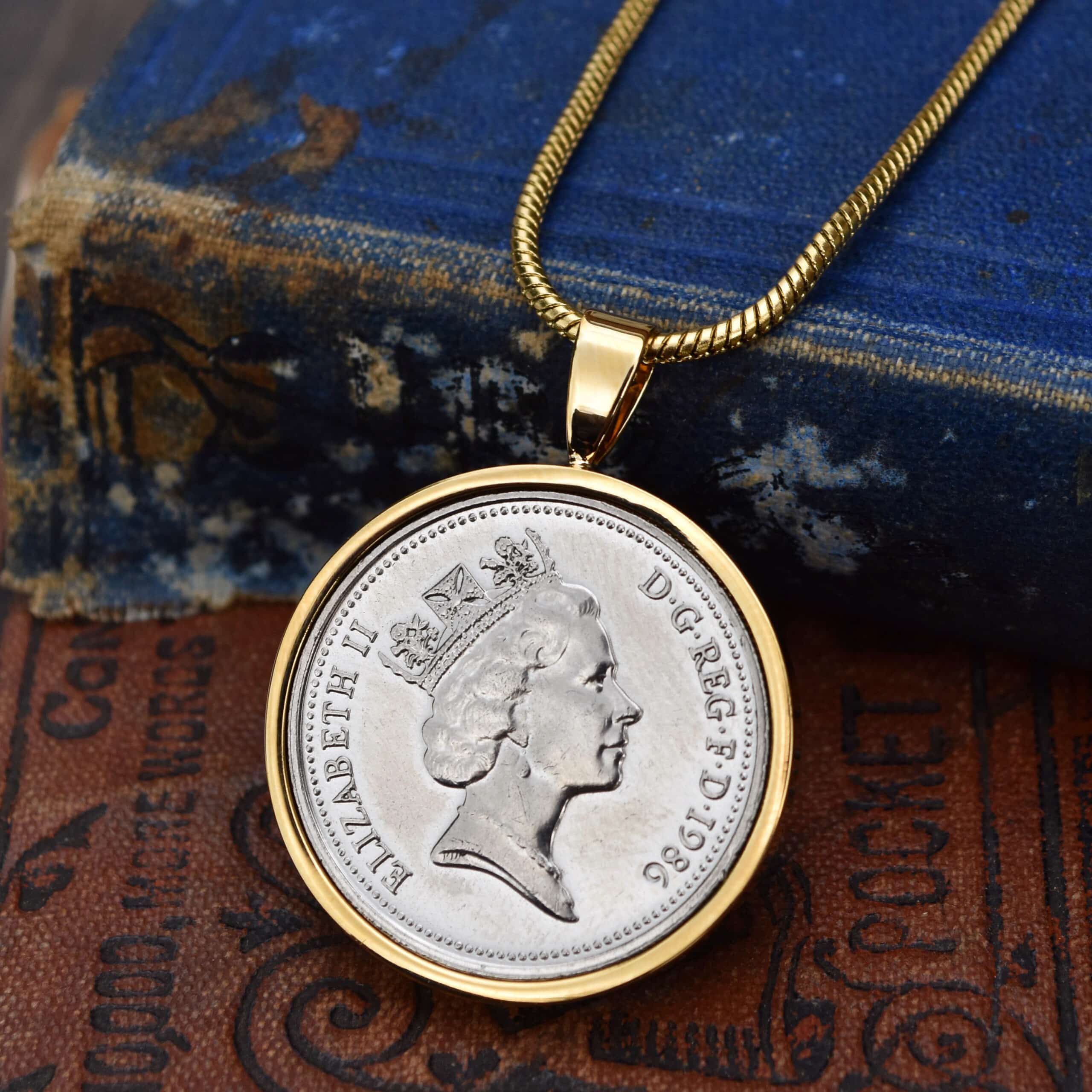 1986 Five Pence Coin Necklace, 40th Birthday or Anniversary Gift – Gold