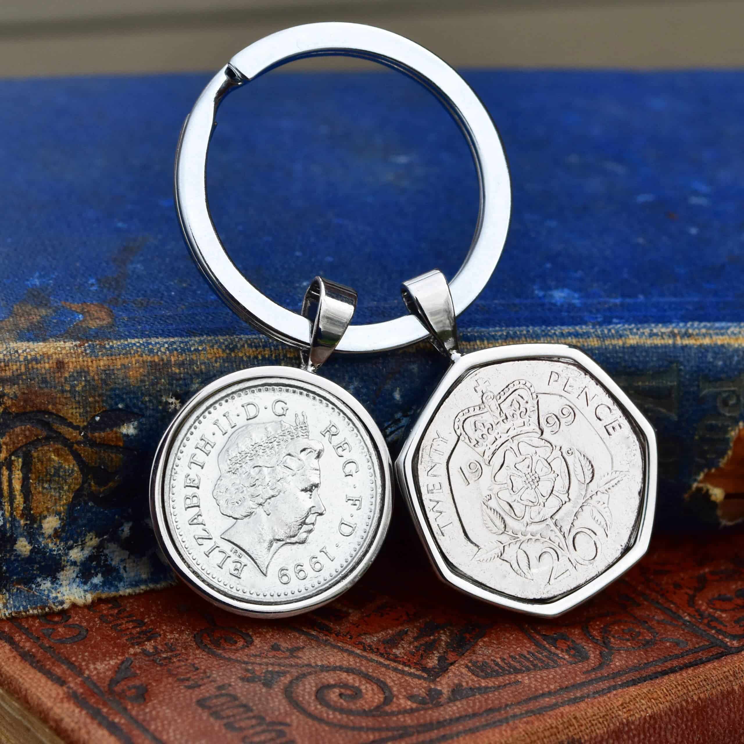 Coin keyrings make unique ‘born in 1999 gifts’ or ‘married in 1999 gifts’.