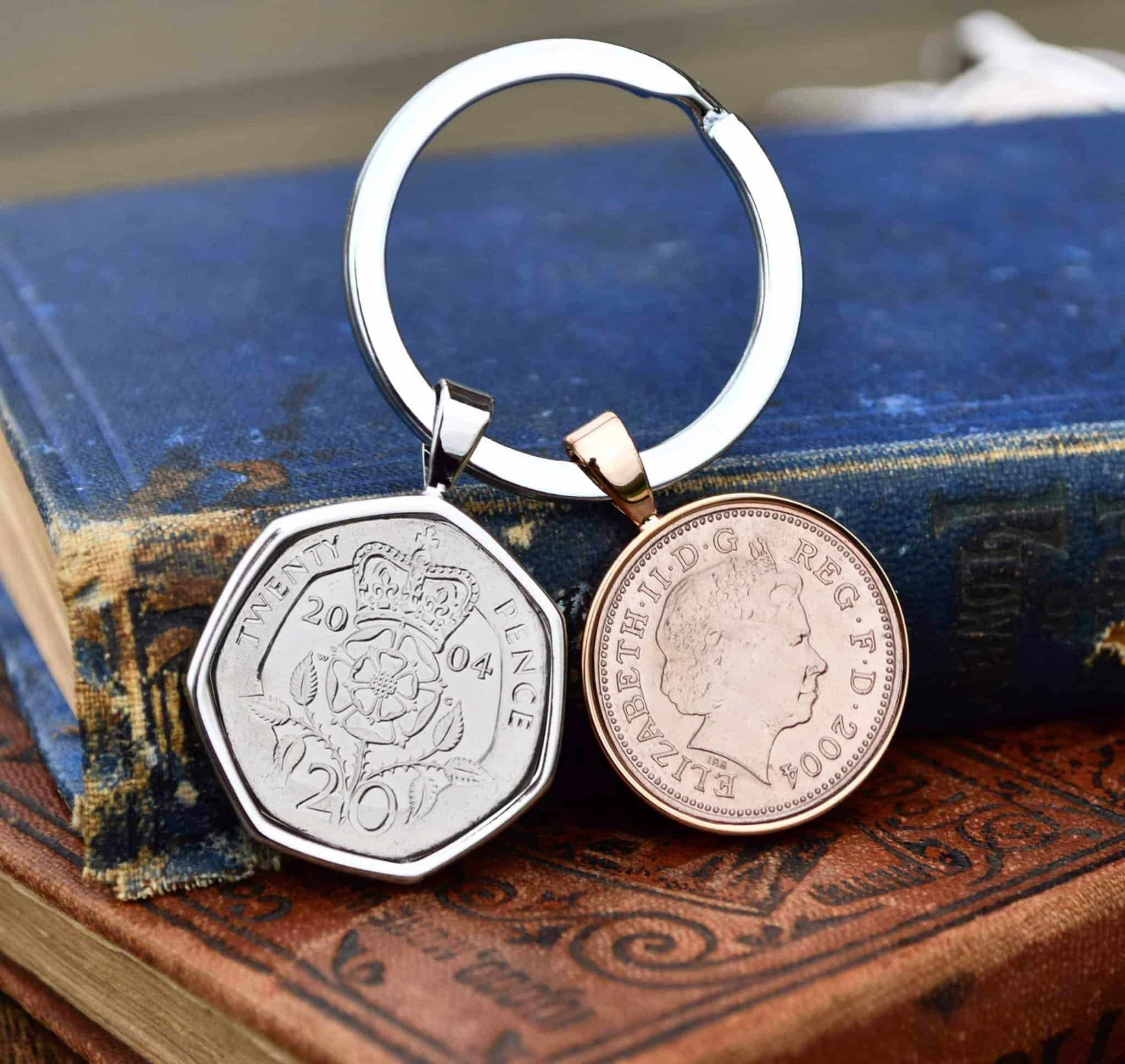 Coin keyrings make unique ‘born in 2004 gifts’ or ‘married in 2004 gifts’.