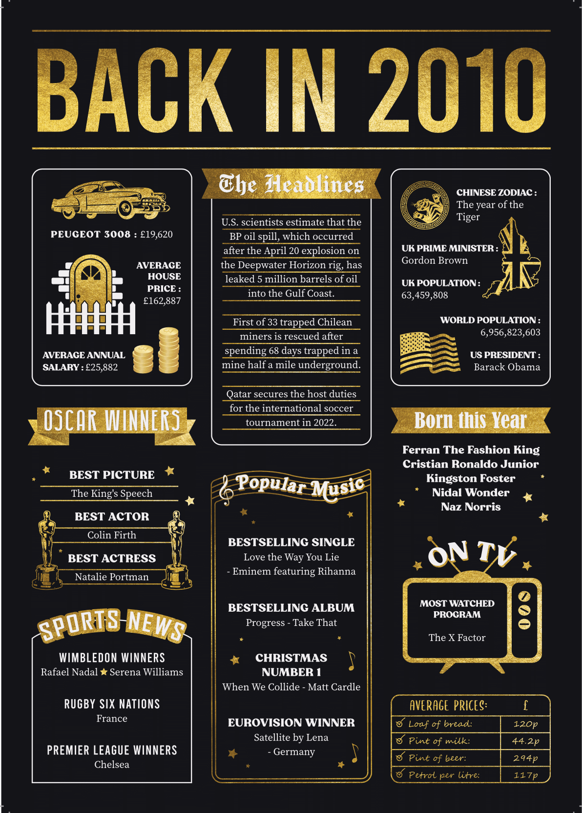 For birthdays, the facts used are exactly as old as the recipient who was born in 2010, therefore are a meaningful and thoughtful present. In addition, they back memories of the ‘good old days’ and lots of conversations about happy childhoods.